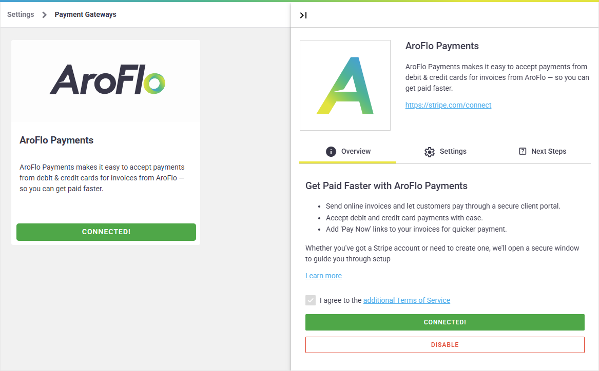 Sign up to AroFlo Payments using the Payment Gateways area or via the Getting Started Assistant.