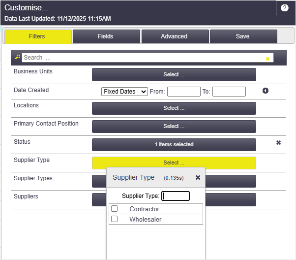 For Supplier reports, you can now filter on Supplier Type so that you can filter the list to show only suppliers set as Wholesalers or Contractors.