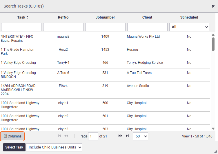 Did you know you can add or remove columns in most places in AroFlo Office? Look for the Columns button to choose which columns you want to display. You can also click and drag the columns to suit your preferred order.