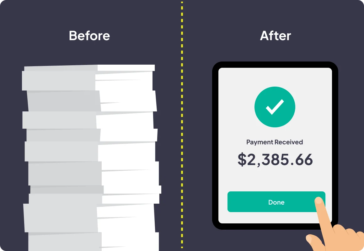 Send invoices with a Pay Now button, take payments on the spot, and keep cash flowing — all from the same system you already use to run your jobs.